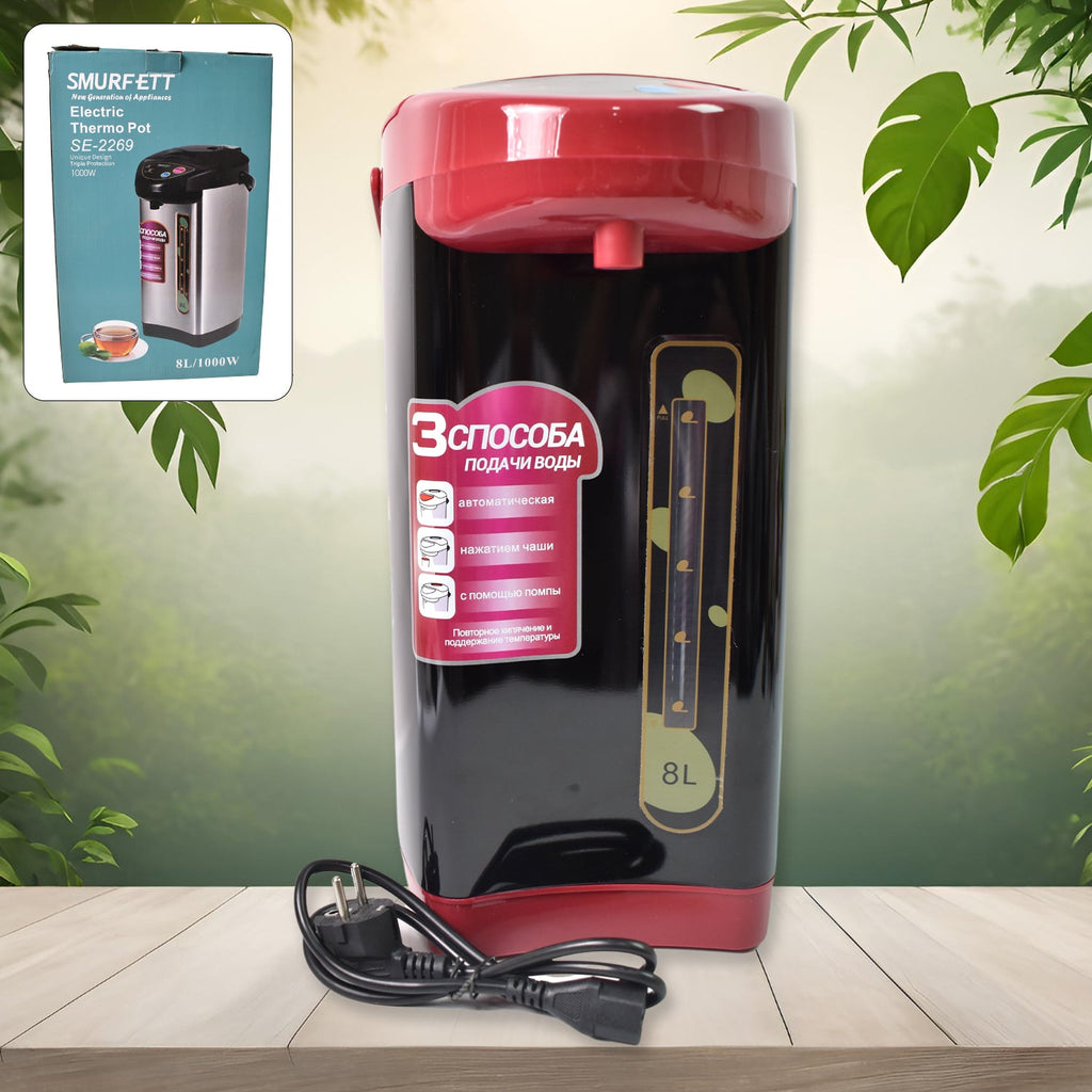 Electric Airport Thermos Kettle Thermo Pot, High Power, Stainless steel thermal insulation water bottle boiling Household kettle (1000W / 8 Ltr.)