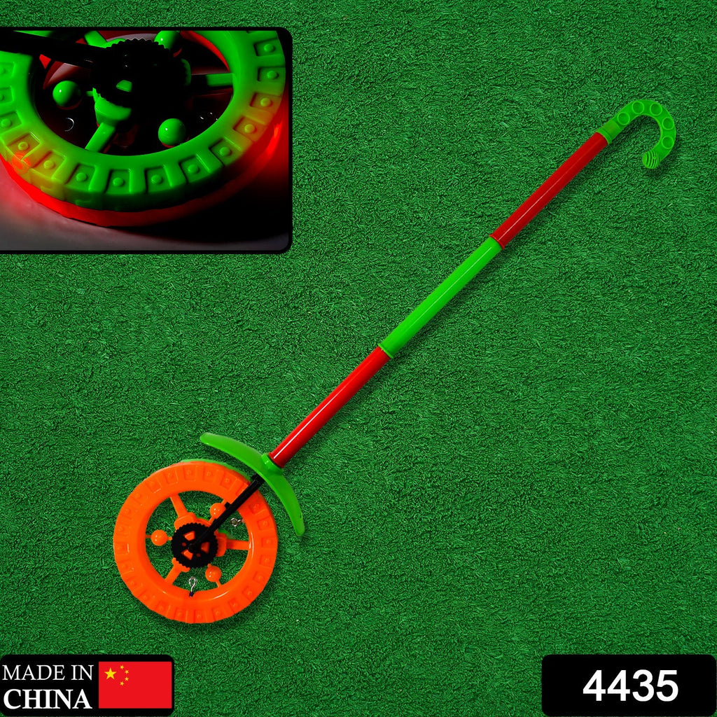4435 Plastic Single Wheel Push Run toy with handle and two lights on wheel. push toy for Kids.